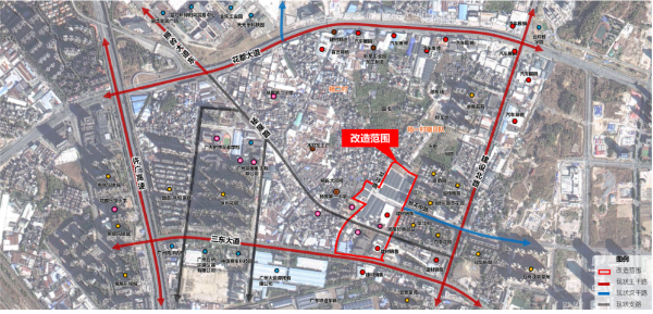 杨一村村镇工业累积区位于花都区中部,地处空铁和会发展示范区的核心板块,区位上风凸起,交通网罗运动,是花都区“制造立区”战术的紧迫承载区。现在,村内近况建筑以1至3层低矮厂房为主,夹杂部分屋基地和烂尾楼,地盘运用率偏低,举座建筑风貌错乱不皆;产业类型以家居遮拦、建材、木业及五金批发零卖为主,企业效益欠安,地盘集约化进程较低,制约了村集体经济增长与村民收入升迁。在此配景下,淘汰过时产能、推动产业用地复合运用、拓展高品性产业空间、引入新兴业态已成为当务之急。