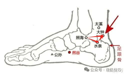水泉、大钟、照海这三个穴位,在脚踝周围造成不端正三角形,是以大伙习尚把它们叫作念“元气三角”。