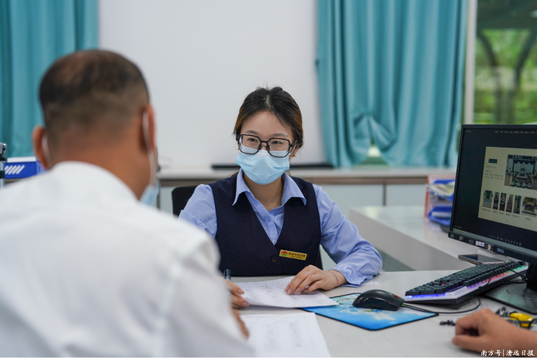 4月2日,市殡仪馆业务大厅,小芳在为市民办理关联业务。清远日报记者 刘淑芳 摄