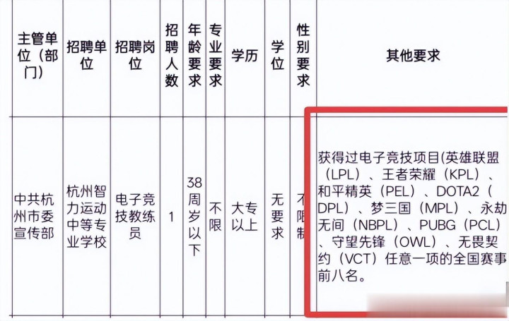 杭州招聘电竞表露职业编,条件最低大专学历,大巨额东说念主无法满足条件,近日,杭州市东说念主力资源和社会保险局发布的一则招聘公告,在电竞圈内激勉不小量度,杭州市智商通顺队与杭州智商通顺中等专科学校公开招聘电子竞技表露岗亭,好多东说念主第一反馈是,电竞,果真也进“体制”了?