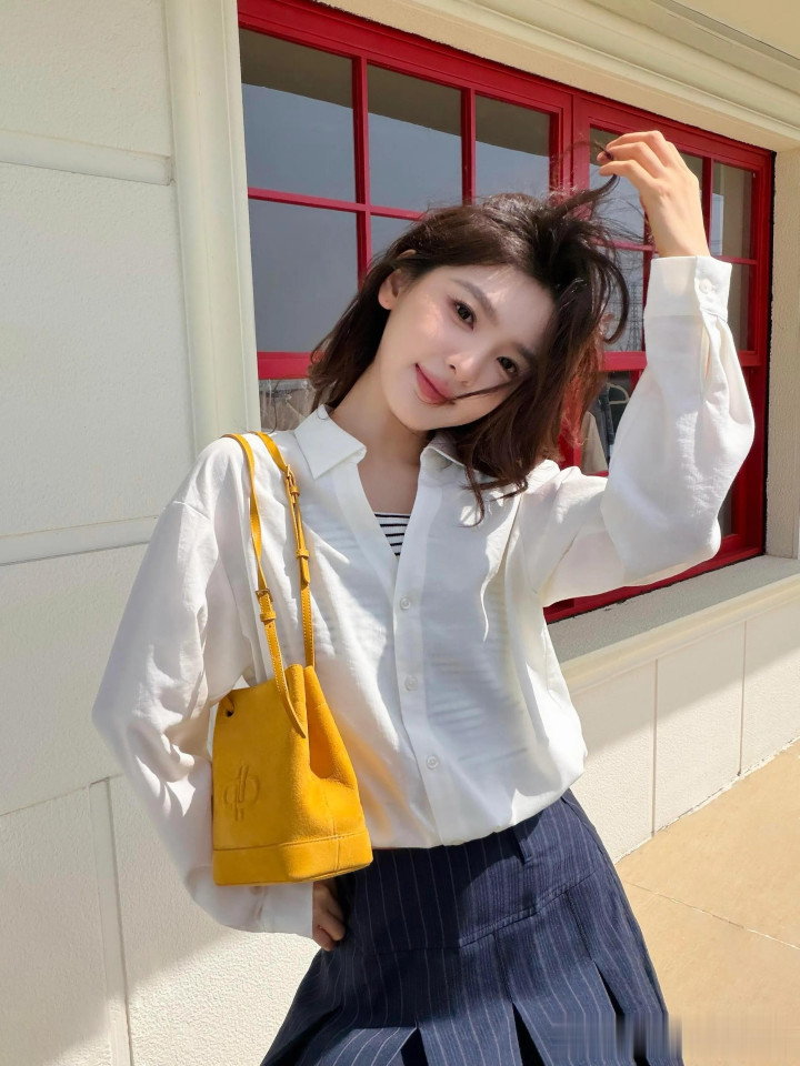 大约也不错像章若楠搭配百褶裙和衬衫,切换瓦解学院风,秒变气质师姐✨