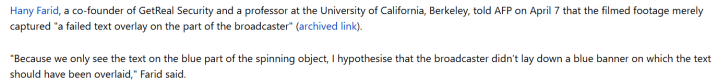针对这段激发误读的视频,好意思国加州大学伯克利分校诠释、数字取证各人哈尼·法里德对法新社示意,画面所败露的止境,更可能是转播方在字幕重叠时出现了时刻纰谬,而非拍摄场景自己存在问题。