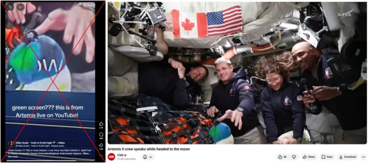 这段激发争议的视频,最早于4月6日前后在外交平台传播。视频由手机拍摄电视画面,本体是“阿耳忒弥斯二号”乘构成员在失重环境中接收采访。画面放大后,屏幕上的字幕看起来像是重叠到了漂流玩偶的一部分区域上,于是被一些账号包装成“绿幕作秀字据”。这一说法飞速扩散,不少网民借此重提“NASA任务作秀”等。